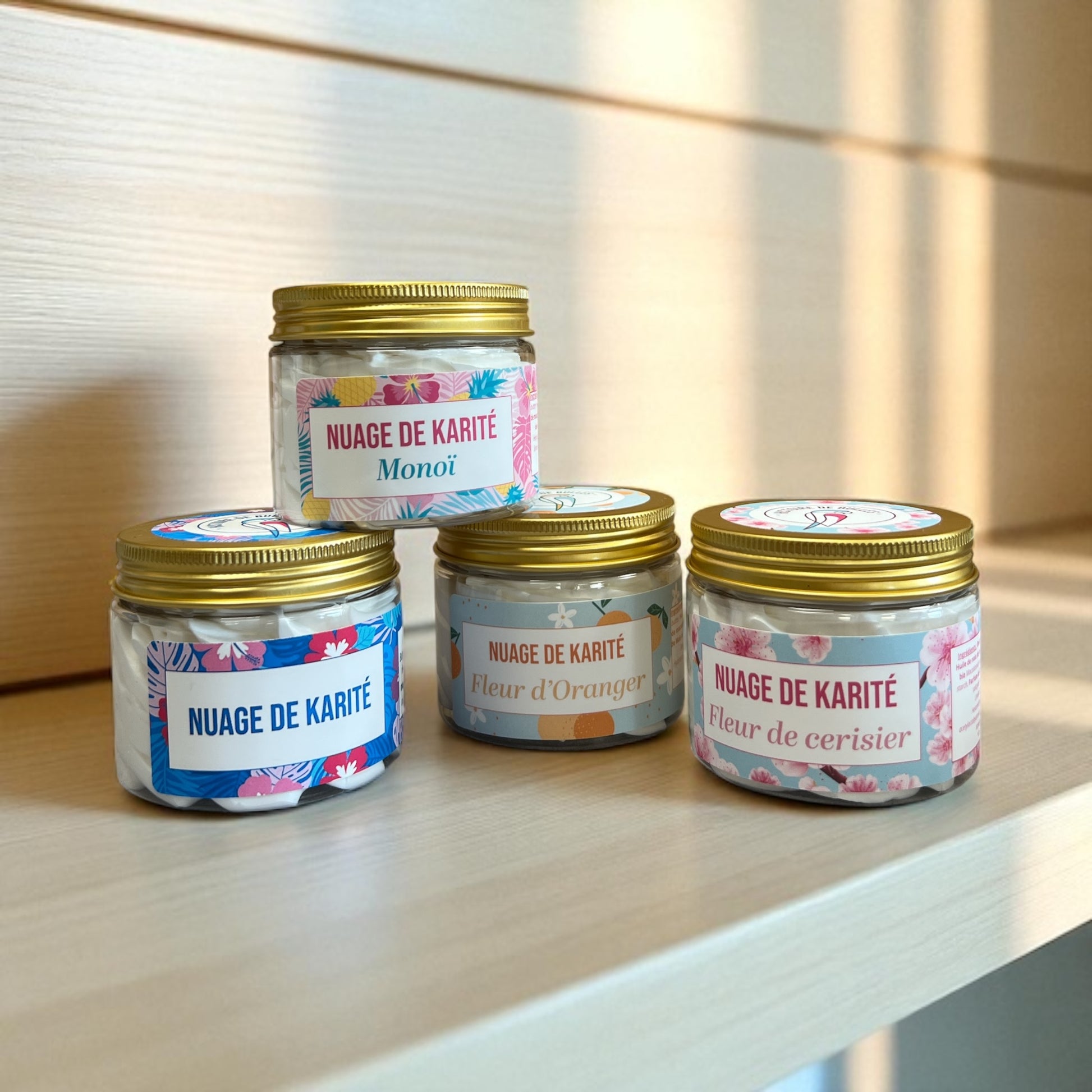 Si vous souhaitez découvrir le nuage de karité mais que vous hésitez sur le parfum, ou que vous les aimez tous ☺️ il y a le trio : 3 petits pots de 50ml avec les 3 parfums (monoï, Fleur de cerisier et fleur d'oranger).