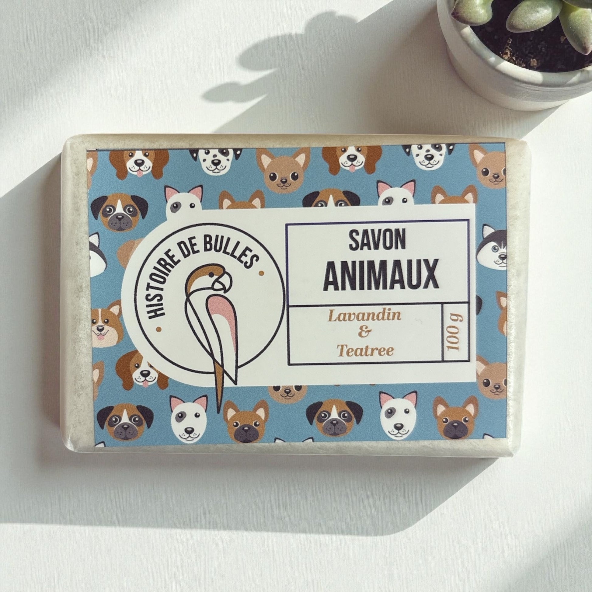 Élaboré à partir d'huiles végétales bio, mon savon pour animaux nettoie en douceur tout en apportant brillance au poil.